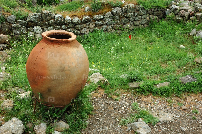 Древние греческие кувшин на зеленой траве