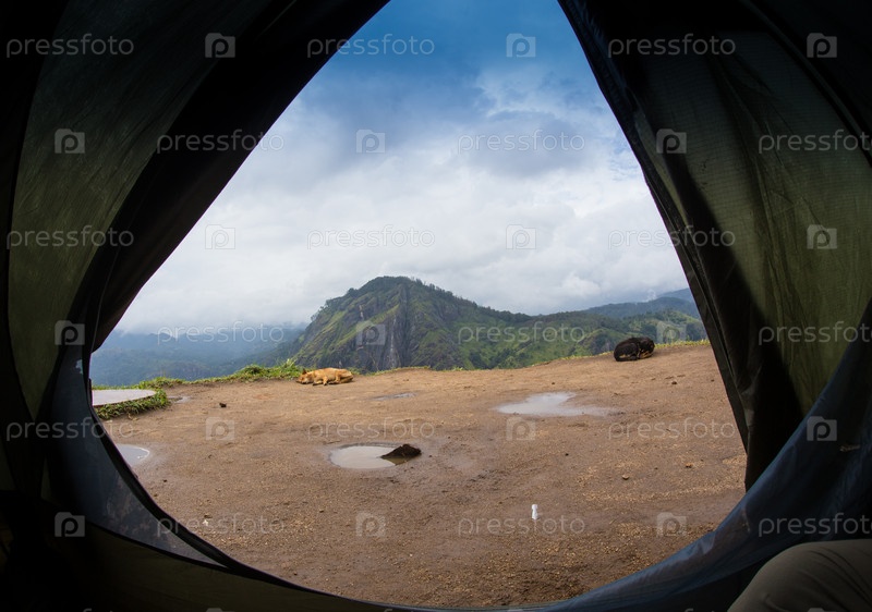 Туристические палатки в лагере среди луг