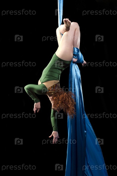 Молодая женщина, обучение на воздушный шелк