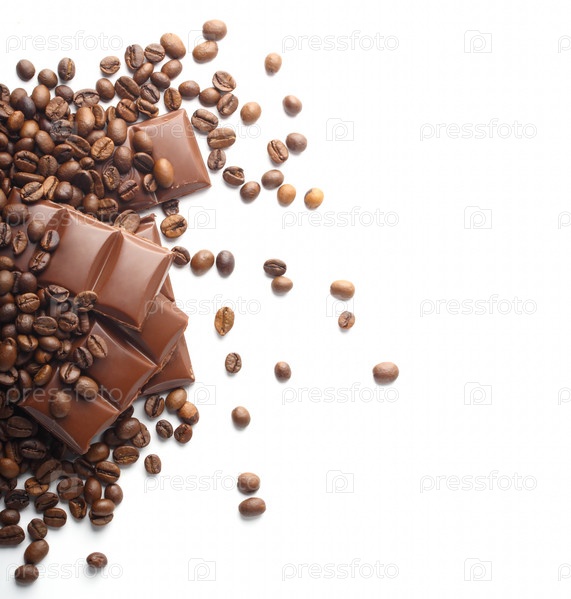 Шоколад и кофе бобы на белом