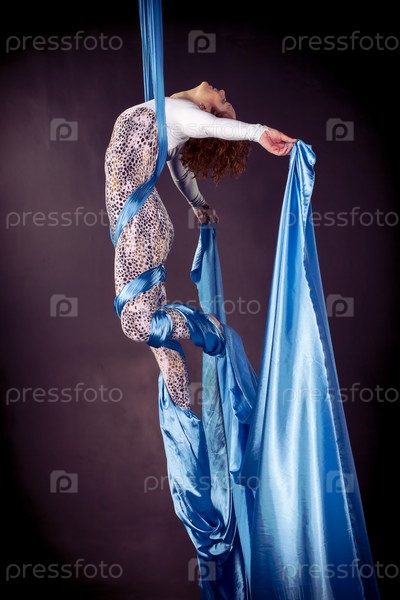 Молодая женщина, обучение на воздушный шелк