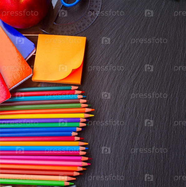 Набор красочных карандаши на черную доску