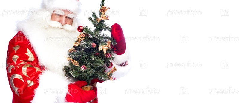 Дед Мороз с елкой на белом фоне