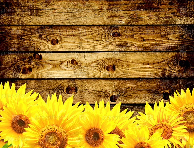 Деревянные текстуры и границы с желтым Подсолнухи