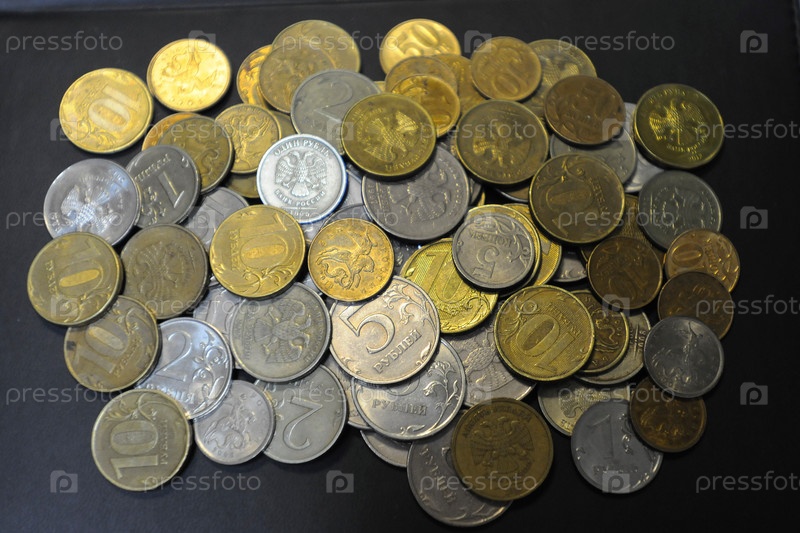Монеты РФ лежат на темном фоне