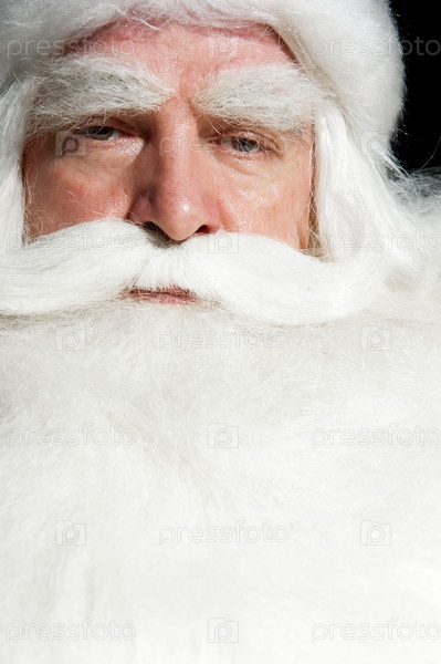 Дед Мороз на черном фоне крупным планом