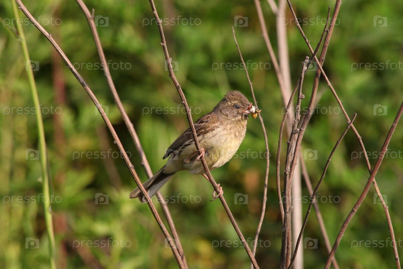 Овсянка седоголовая с добычей
