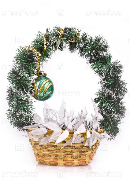 Декоративная новогодняя корзинка на белом фоне