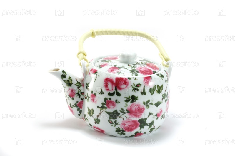 Чайник с цветочным орнаментом на белом фоне