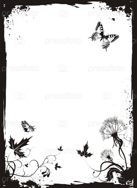 Векторный гранж цветочный фон с одуванчики и бабочки