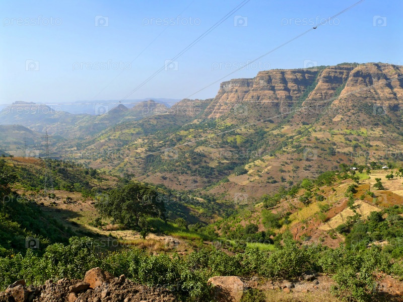 Эфиопские деревня в долине гор. Африка