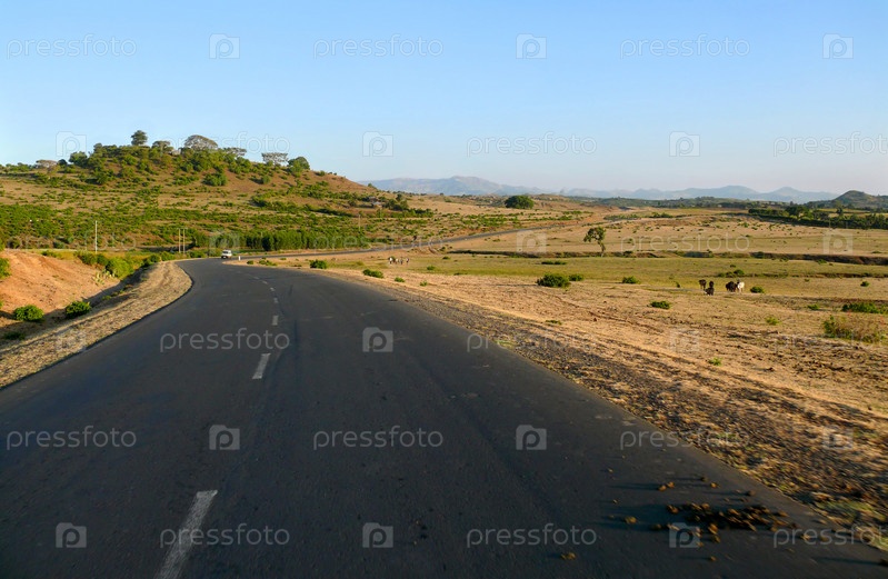 Автомобиль, путешествия на дороге. Горный пейзаж из Эфиопии. Африка