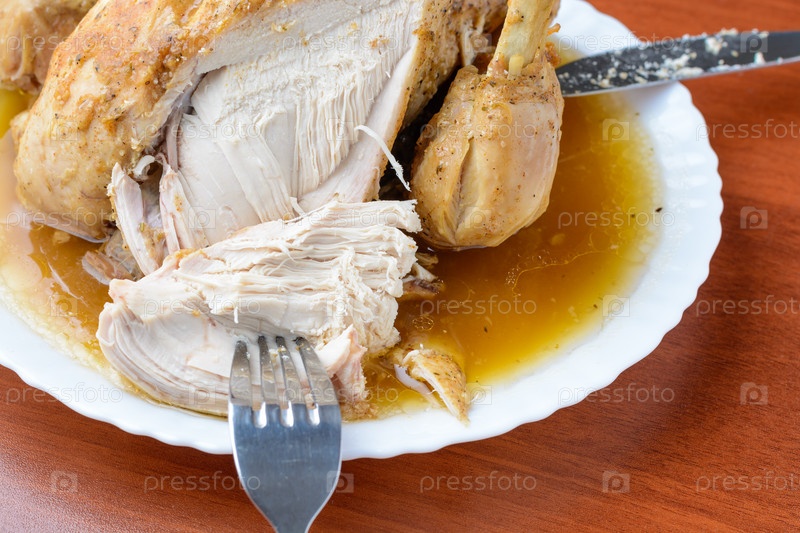 Запеченная курица на белом фоне