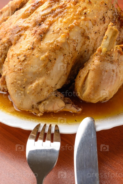 Запеченная курица на белом фоне