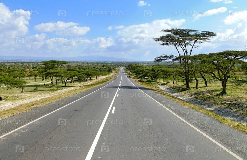Дорога заделывают. Вокруг ландшафта природы, причудливый деревьев. Африка, Эфиопия