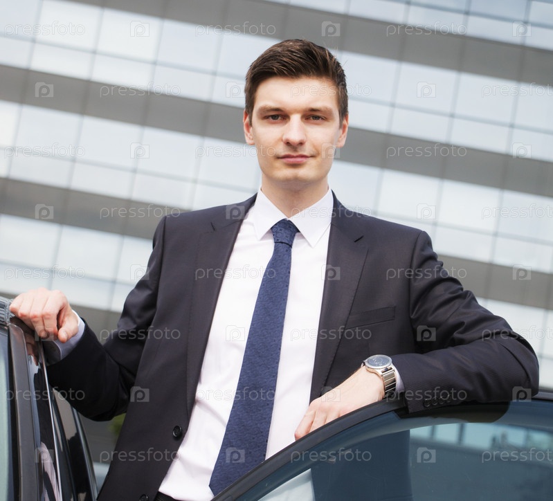 Молодой предприниматель, стоя возле своего автомобиля