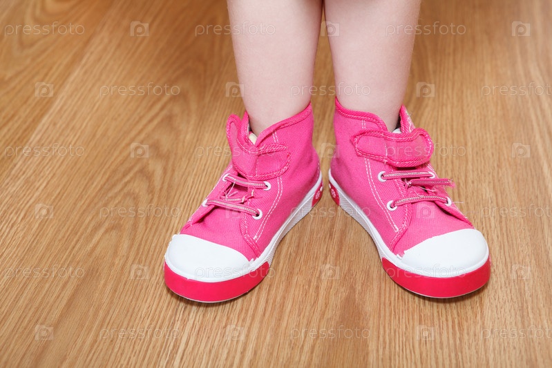 Дети ноги в розовые туфли, стоя на полу