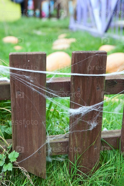 Деревянный забор с паутиной