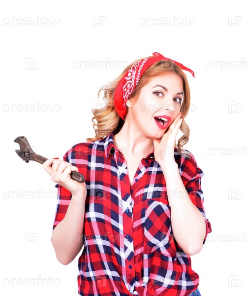 Девушка ретро с гаечным ключом