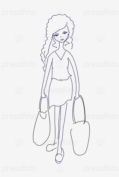 Эскиз усталой молодой женщины с сумками