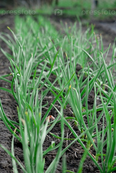 Зеленые побеги молодой лук