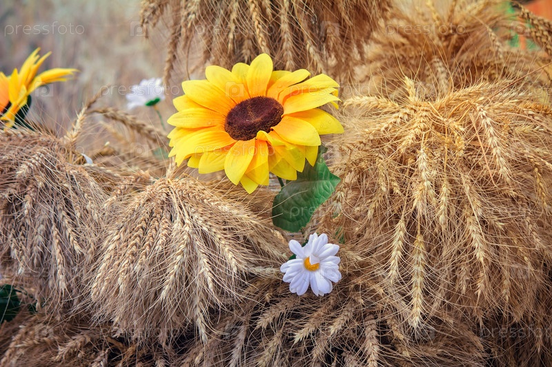 Украшения из искусственных цветов и колосьев