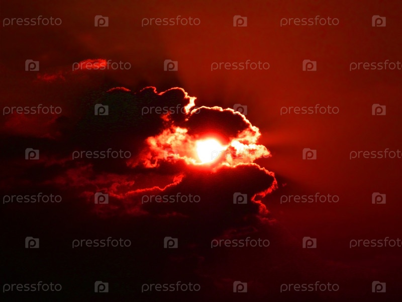 Восход солнца на красном облачном небе
