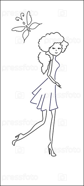 Эскиз красивая молодая девушка, линии искусства векторные иллюстрации