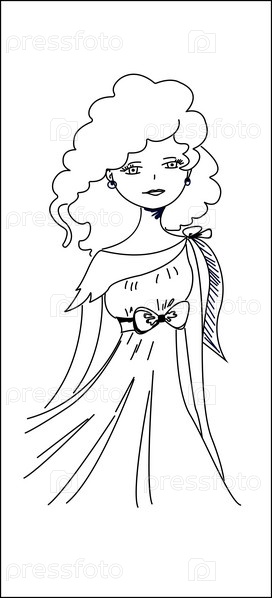 Эскиз красивая молодая девушка, линии искусства векторные иллюстрации