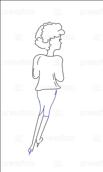 Эскиз красивая молодая девушка, линии искусства векторные иллюстрации