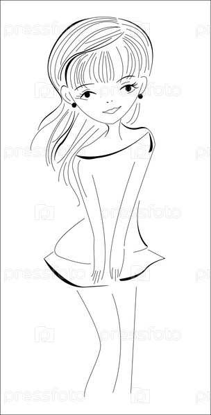 Эскиз красивая молодая девушка, линии искусства векторные иллюстрации