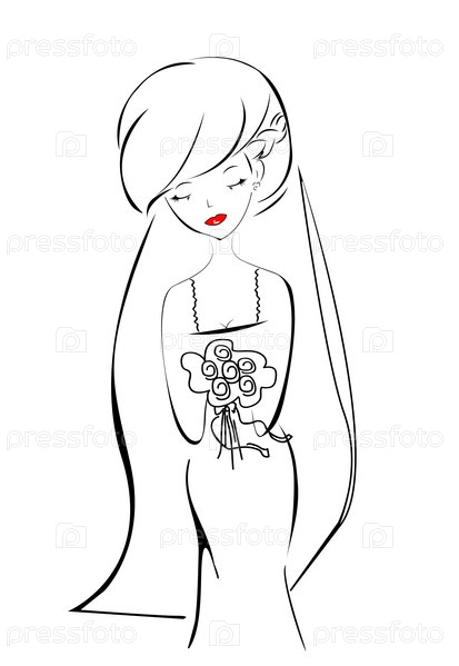 Красивая невеста с букетом цветов, векторные иллюстрации