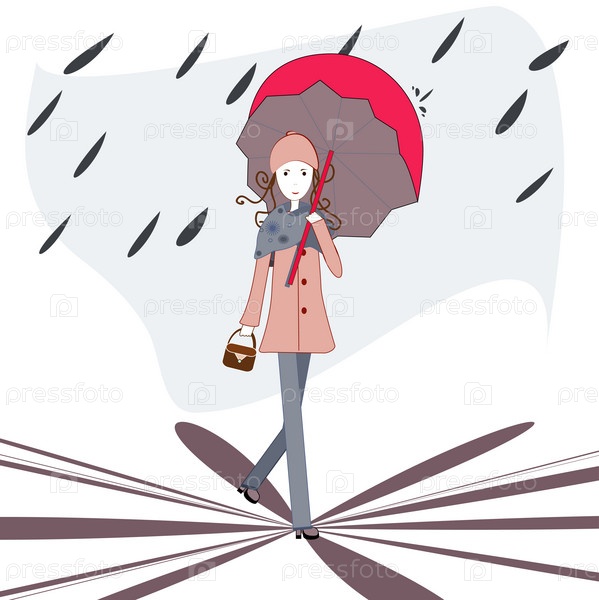 Барышня под зонтиком, векторные иллюстрации