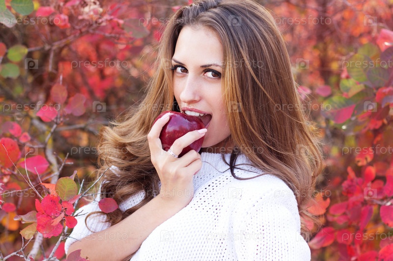 Портрет красивой девушки с яблоком в руке