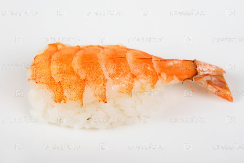 Нигири с лососем на белом фоне
