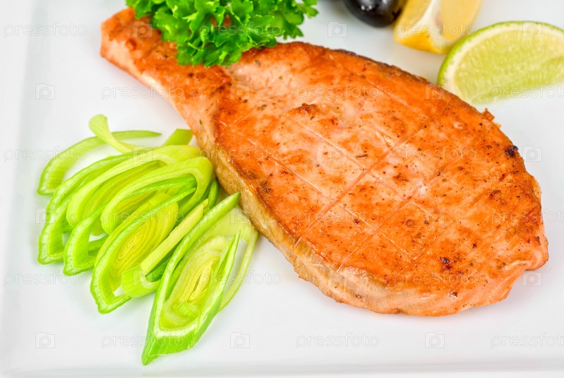 Стейк из лосося с зеленью