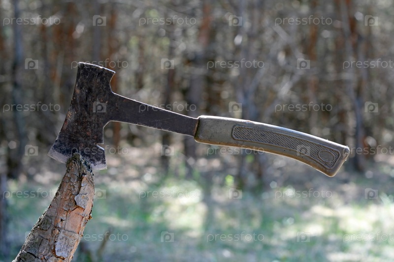 Топор крупным планом в лесу