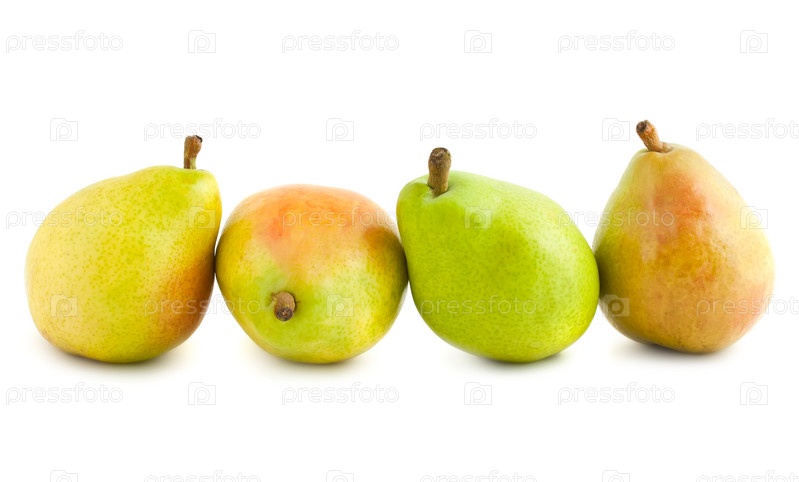 Четыре спелые груши на белом фоне