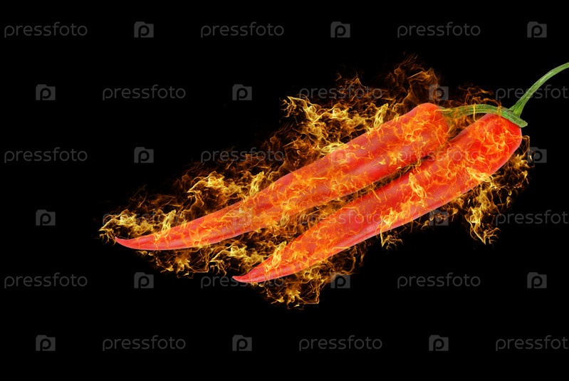 Стручки красного перца чили в огне