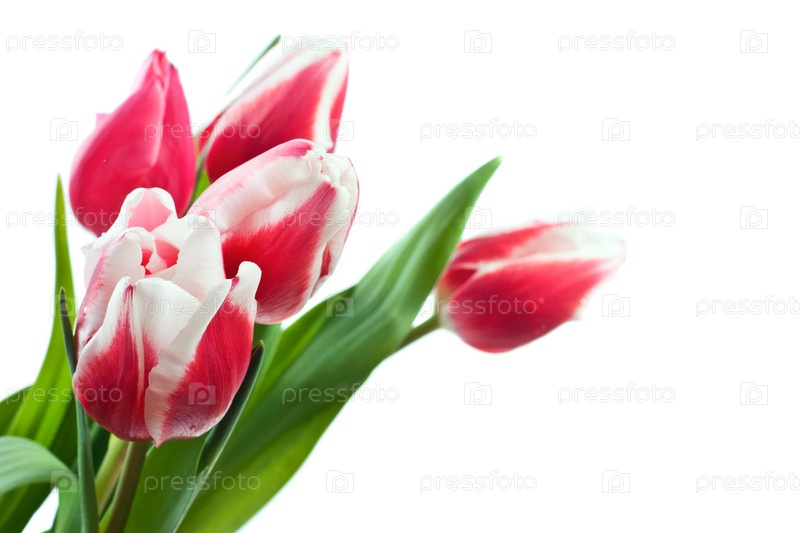 Свежие яркие тюльпаны, изолированные на белом фоне