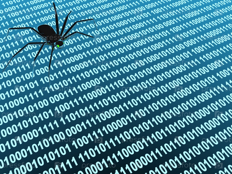 Робот - паук на экране с бинарным кодом