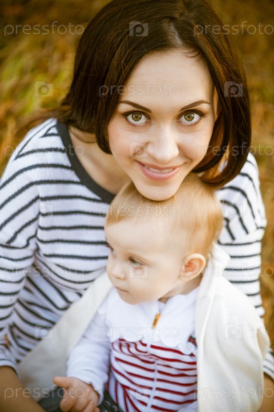Мать с дочерью ребенка в Осенний парк