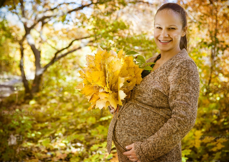Беременная Женщина, с кленовыми листьями