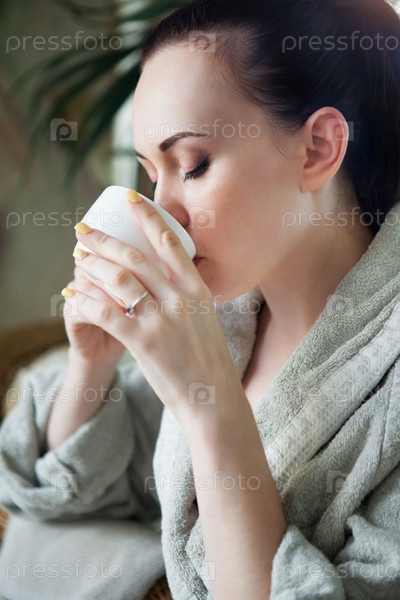 Женщина пьет чай на спа-курорте