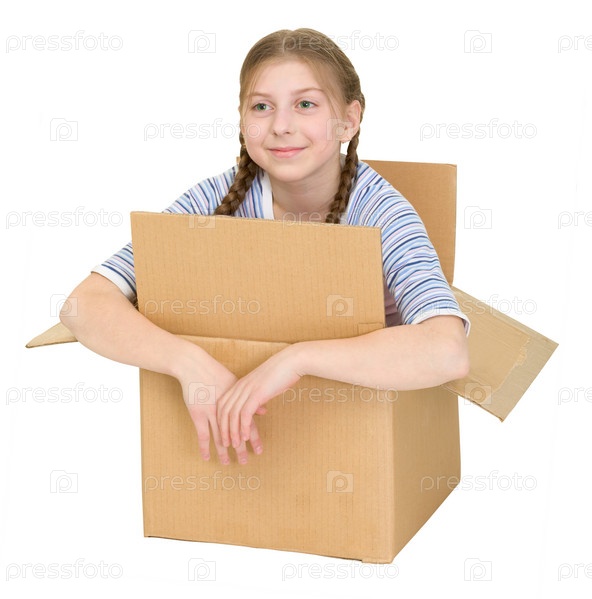Кавайская девушка в большой картонной коробке