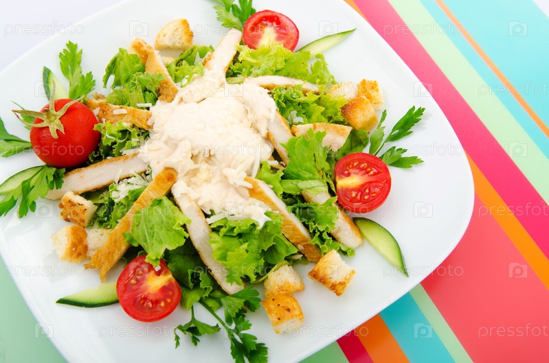 Салат Цезарь на тарелке