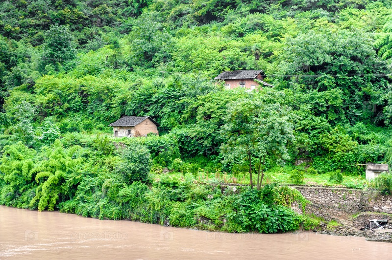 Путешествие по реке Янцзы с видом на деревню