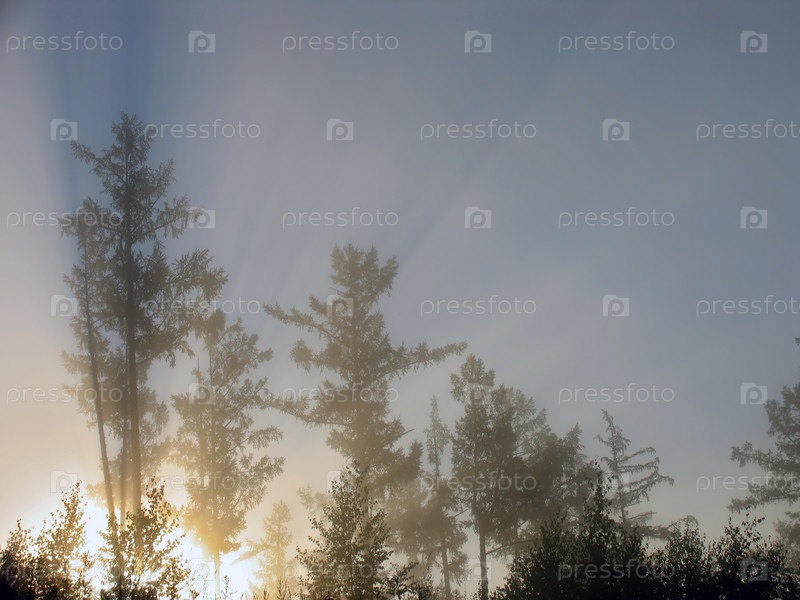 Природа Байкала. Толстые Сибирский лес. Закат на небе