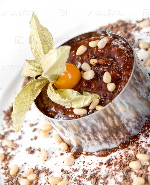 Шоколадное ризотто крупным планом, изолировано на белом фоне