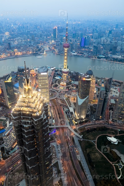 С видом на Шанхай финансовый центр в сумерках